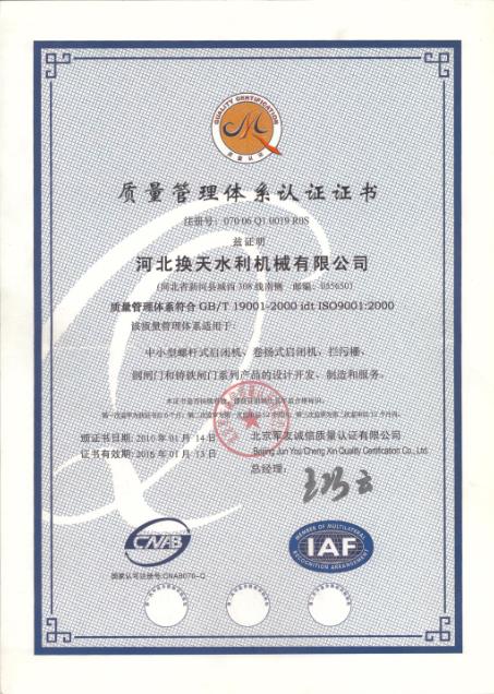 換天質量管理體系認證證書